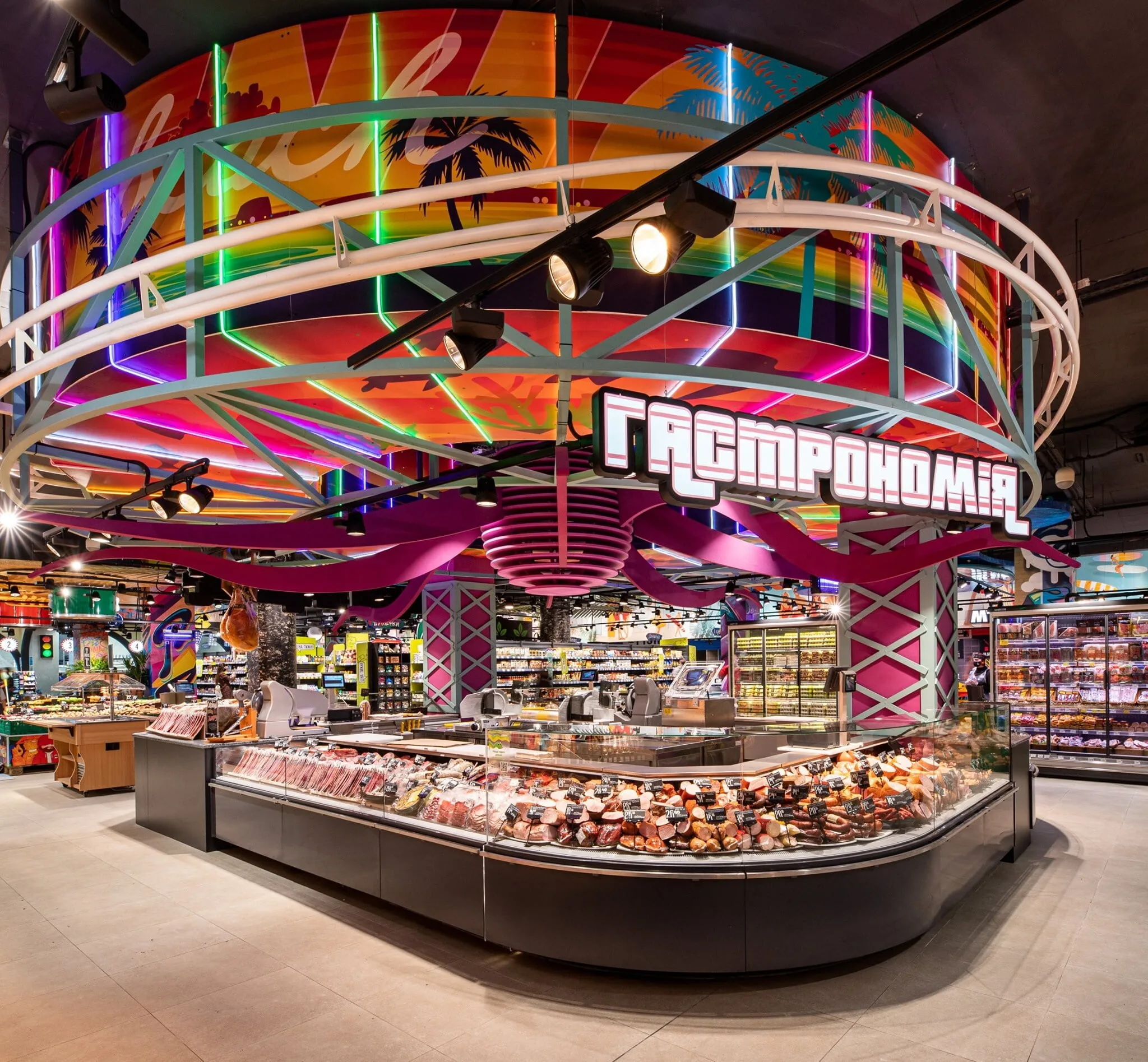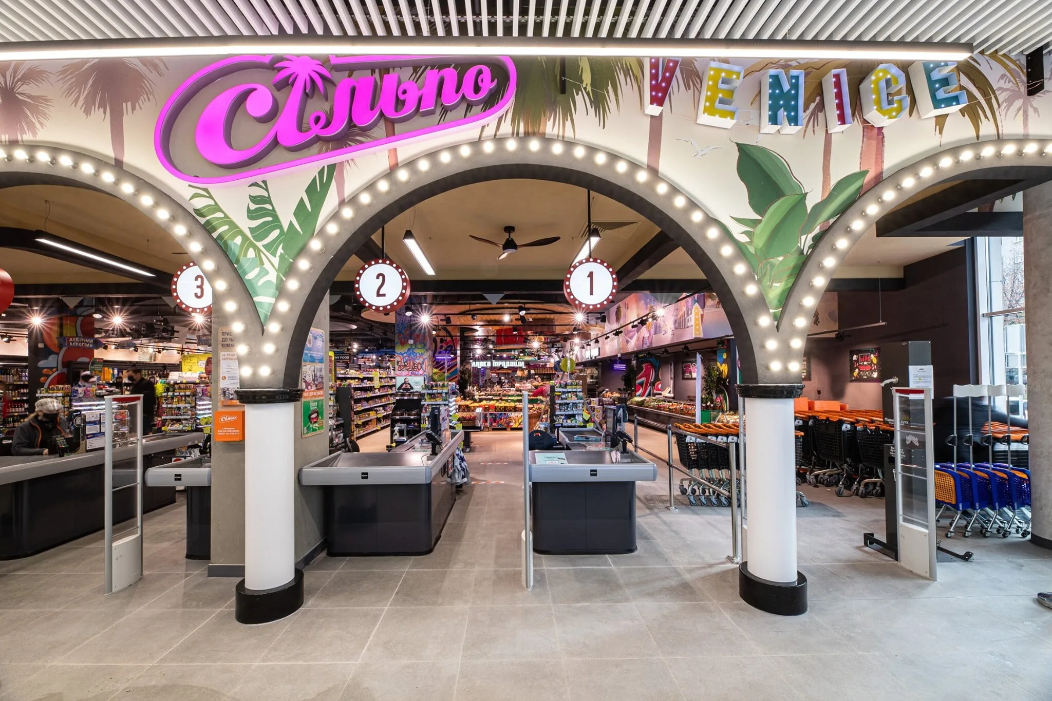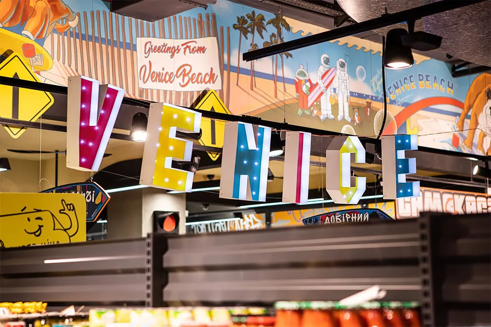 This supermarket is about limitless creativity and self-expression. Street musicians, creative freedom, an entertainment pier with a roller coaster, Malibu lifeguards and palm trees – everything is ready, and everyone is waiting. Who was passing by got tanned, maybe even collected shells.